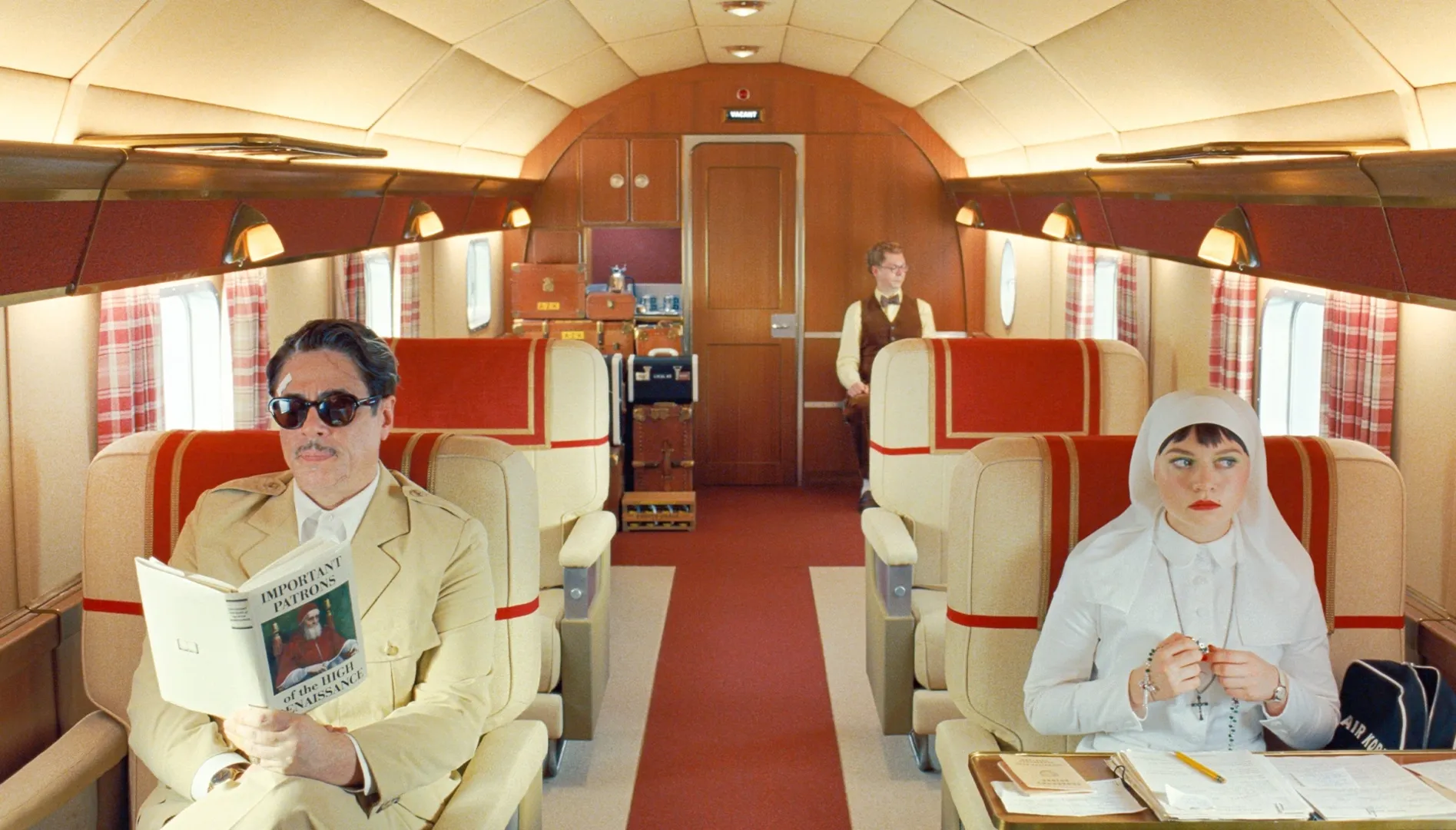 Por un lado, la emoción enmascarada de los personajes acaba revelándose con pasmosa claridad y muy sintéticamente (es decir, condensada) en recitaciones como la citada (el sentirse halagado o entristecido, como si tal vez importara). A este respecto, toda la emoción sentida acaba por verbalizarse, dada la tendencia de los personajes, a pesar de la mentira o del ocultamiento estratégico argumental puntual, de contar las intenciones, frustraciones y acciones que experimentan o realizan mientras las viven. Una tendencia que solo es parte de la propensión más general de Wes Anderson hacia la superficialidad, es decir, hacia dejar en la superficie verbal e icónica la mayoría de significados, rasgos psicológicos, datos, etc. La forma es el fondo y el fondo no es más que la forma. Es en este sentido en que se puede concebir el ordenado universo ficticio andersoniano como un artefacto o mundo de autenticidad y sinceridad (de manera similar, quizás, a Aki Kaurismäki). Por ejemplo, los libros que lee Korda reciben como título una descripción de su contenido o, equivalentemente, son “cualquier” libro sobre el tema cuyo título desvela. O, otro ejemplo, un paneo hace visibles las cajas de zapatos que incluyen los diferentes pasos del plan de Korda cuando este las nombra, de manera que tales cajas existen en tanto mentadas y son mentadas en tanto que existen. Redundancias como esta, junto a los caricaturescos personajes secundarios, las ocurrentes situaciones o las repeticiones de gags, que constituyen las principales herramientas humorísticas de una película que no llega a las cotas de hilaridad con poso melancólico de muchas de las anteriores obras de Anderson.